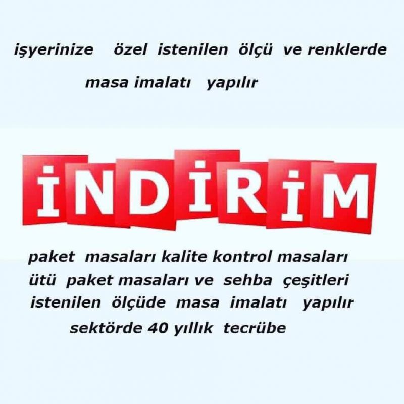BÜTÜN SEKTÖRELERE ÇALIŞMA AMBALAJ PAKETLEME VE ÜRETİM MASALARI İSTENİLEN RENK VE ÖLÇÜLERDE UYGUN FİATA İMAL EDİLİR İLETİŞİM 0539 445 69 55